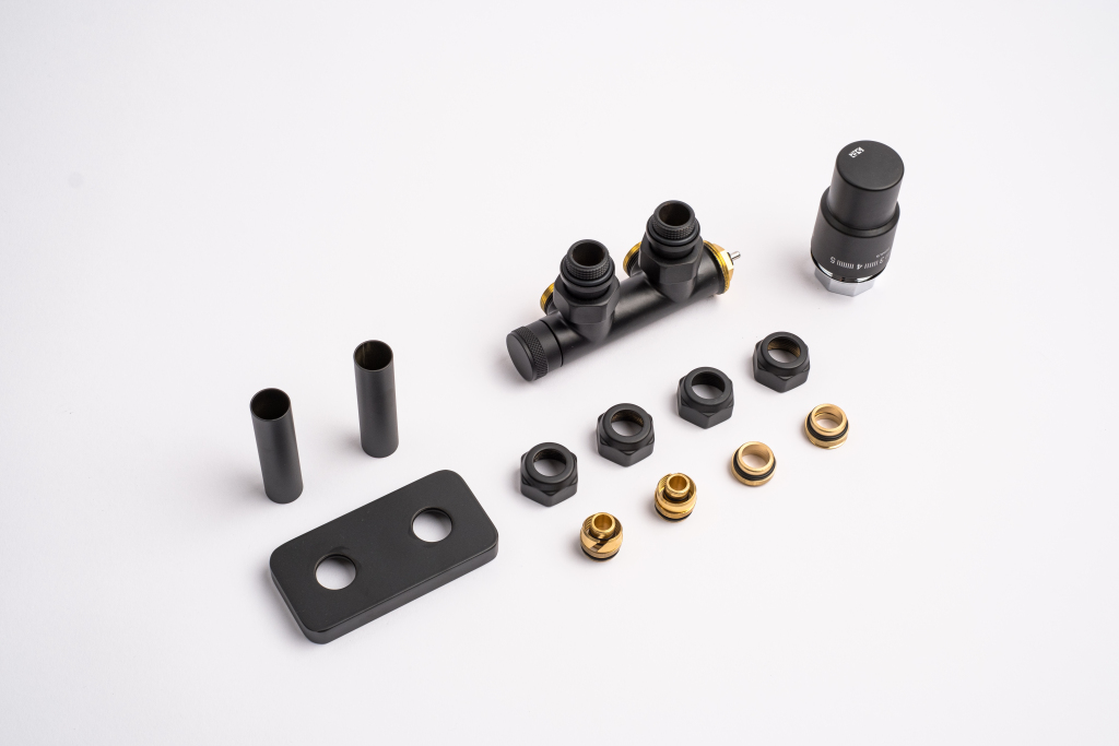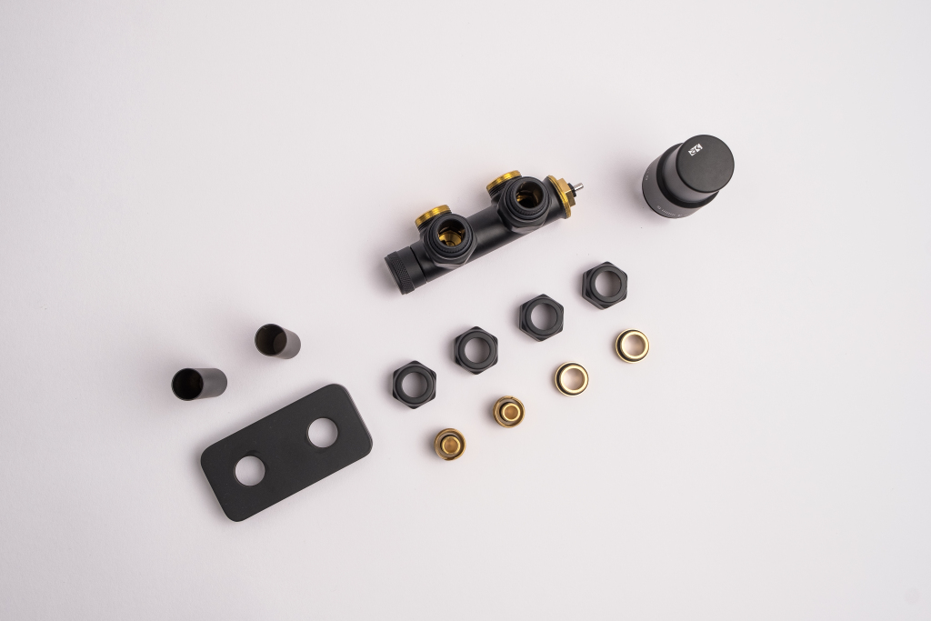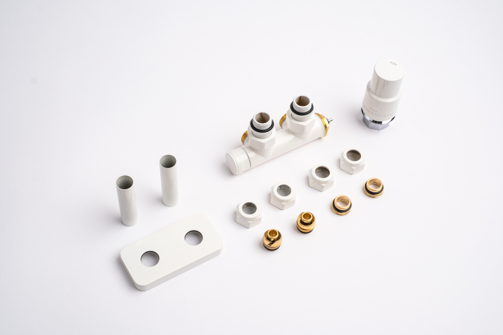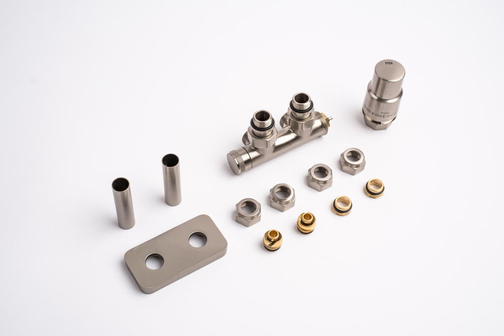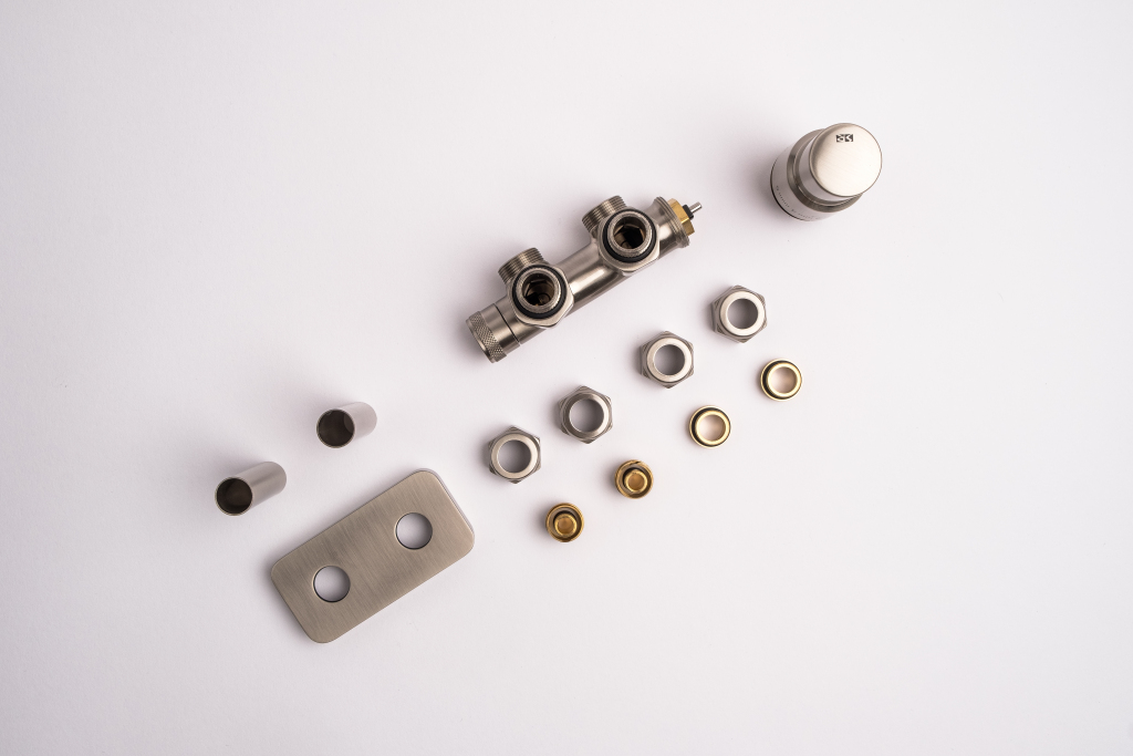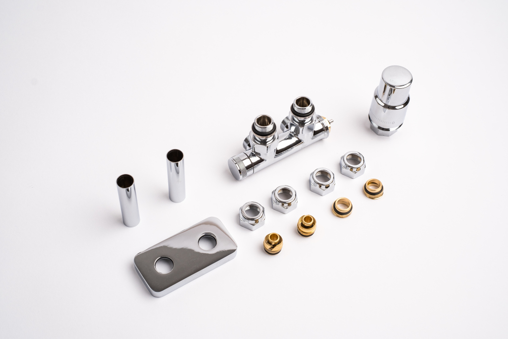 Kompletná sada okrem ventilu obsahuje aj krycie rozety a svorné šróbenie na pripojenie na meď 15 mm a Alupex 16 mm.