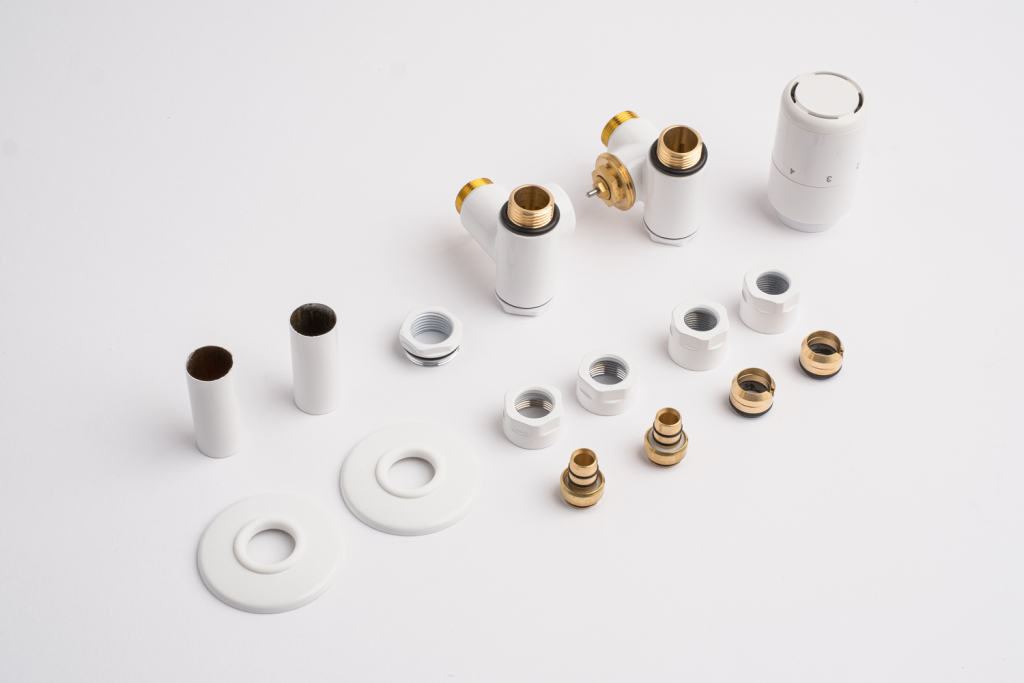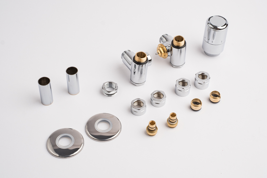 Kompletná sada okrem ventilu obsahuje aj krycie rozety a svorné šróbenie na pripojenie na meď 15 mm a Alupex 16 mm.