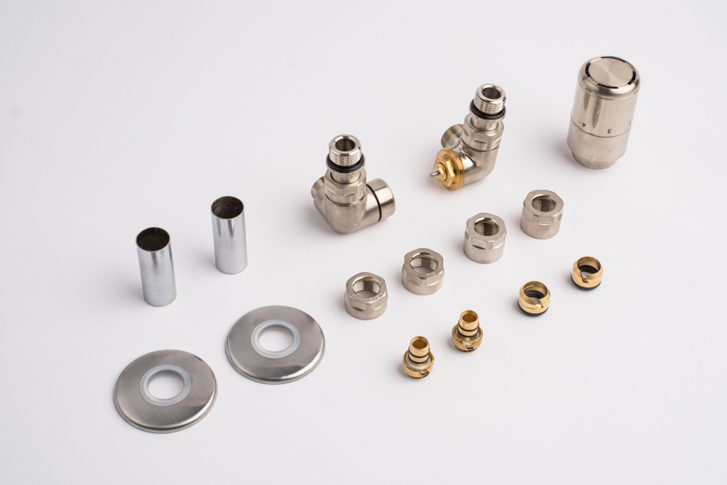 Kompletná sada okrem ventilu obsahuje aj krycie rozety a svorné šróbenie na pripojenie na meď 15 mm a Alupex 16 mm.